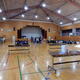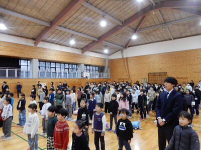 投票が終わってみんなが教室に帰ったあとの体育館です。立候補者、推薦責任者、選挙管理委員が集まっています。