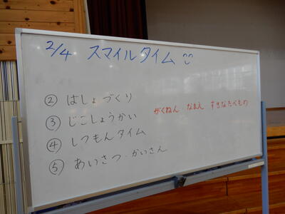 今日のスマイルタイムは、来年度の新しい「なかよし班」のスタートです。