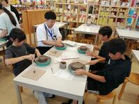 お昼の後は、陶芸体験。自由な発想で、個性的なお皿ができました。このお皿にのせて食べた料理はきっと美味しさ倍増でしょう。