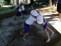 そして、いよいよ土俵へ。「投げ」なしの、「押しずもう」です。