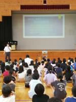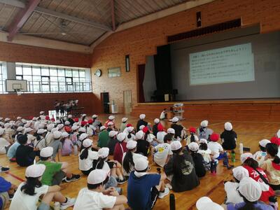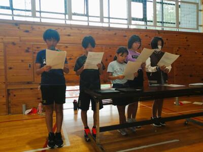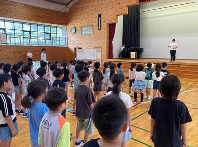 「今回の親子作業では、お家の人たちの姿がとても勉強になったと先生は思います。では、どんなところが勉強になったのでしょうか。お家の人たちは、自分の場所を中心として清掃し、終わったら次の清掃場所をさがしていました。これは、上松小学校が掃除のときに心がけている『もくもく清掃』と『みつけ清掃』です。さらに、お家の人は、ただ掃除をしているのではなく、「感謝の気持ち」をもって清掃しているように感じました。」