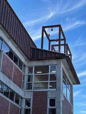 学校の屋上にあるカリヨン(鐘の音楽)を1日3回鳴らしています。