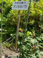 昇降口横の「アンネのバラ」が咲いています。色が赤から黄金色と色が変化しています。是非ご覧ください。