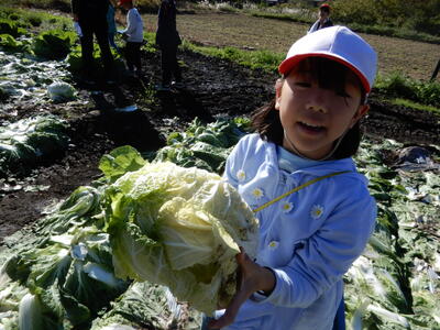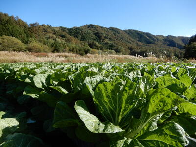 そんな気持ちのよい青空の元、さっきスーパーで見た白菜の畑が広がっていました。大きな白菜は、重い!
