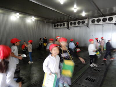 ちょっと薄暗い中に、入荷した品物が積んであったり、保冷庫があったりと、私たちが便利に買い物をするために、ここで商品を管理したり、保管したりしていたことがわかりました。