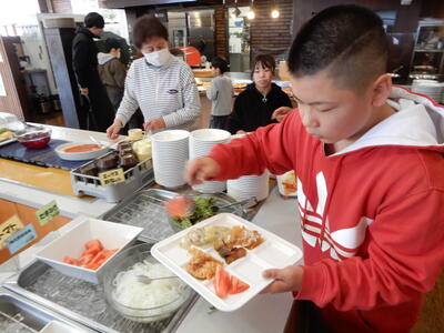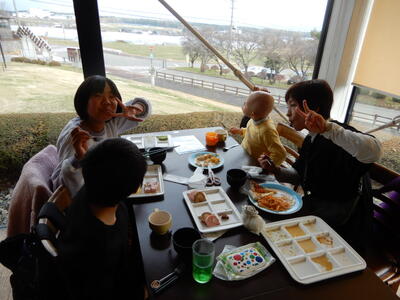 しばらくすると「手を合わせてください」「いただきます!」とお行儀のよいあいさつが聞こえました。マナーをしっかりと守ろうとする姿がすてきです。