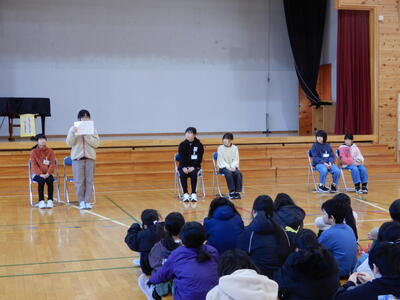 演説をしている候補者の方を、他の候補者や推薦責任者も見つめています。その姿から、お互いを応援し合う気持ちや、「5年生みんなで学校を引っぱっていくんだ」という団結力が感じられました。