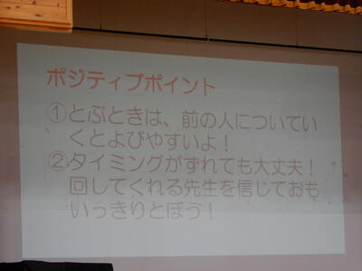 「ポジティブポイント」をみんなで共有し、さぁ、さっそく「8の字跳び」開始です!