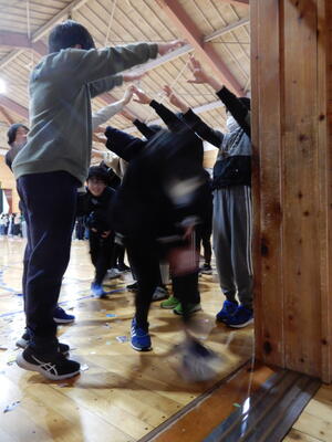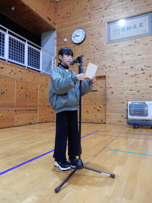 5年生は、この会の主催者として、運営からがんばりました。立ち姿も立派な新児童会長を中心に5年生全員で企画したイベントです。