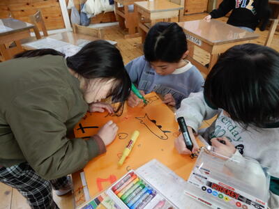 2年生の教室では、イワナの絵を描いたり、ポスターを作ったりして、センターの方が来てくれるのを待っていました。